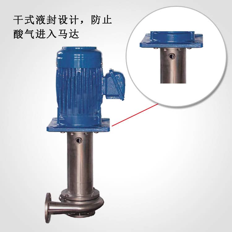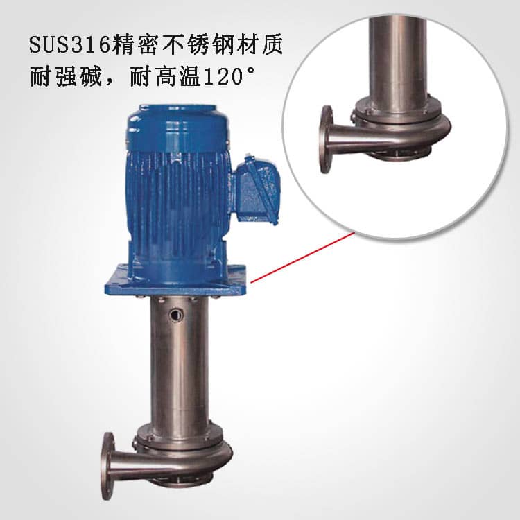 不銹鋼液下泵的產(chǎn)品 勢: 1. 采用不銹鋼316或鈦金屬精制鑄造成型,無沙孔問題,葉輪效率高。 2.電機(jī)采用臺灣東元電機(jī),加大規(guī)格軸承,有效減少泵的偏振。 3. 適合各種酸堿液、微酸液循環(huán)使用,耐高溫。而且泵浦體積較小,適合槽內(nèi)槽外設(shè)計使用。4.采用無機(jī)械密封設(shè)計,克服離心泵泵的不能干轉(zhuǎn)或空轉(zhuǎn)的要求。因此,在吸入口阻塞或出口阻塞或液體有結(jié)晶的情款下都不會發(fā)生泄漏的情況。從根本上解決了“跑,冒,滴,漏”的問題。